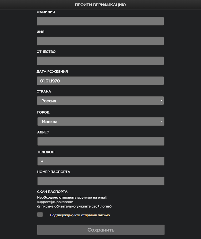Подтверждение личности пользователя сегодня практикуется практически во всех покер-румах, имеющих игорную лицензию на предоставление услуг в области онлайн гемблинга. Вывод средств на РуПокер производится исключительно при наличии идентифицированного аккаунта. Верификация включает в себя три этапа: