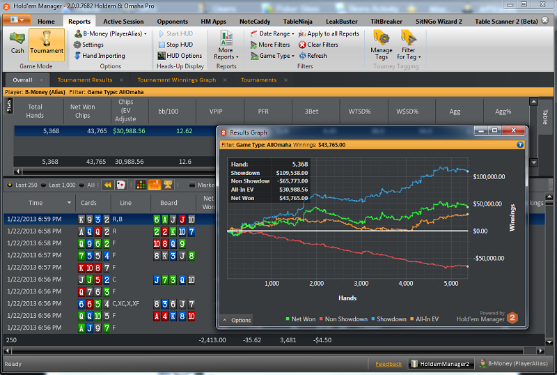 По этой причине, если попытаться оценит работу клиента с использованием базы данных, то здесь все упирается в объем, который она занимает. В случае с небольшой библиотекой, работу прекрасно выполнит именно Покер Трекер, а для баз больших размеров – Холдем Менеджер.