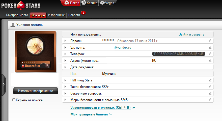 Раздел «Учетная запись» или «Личный кабинет» не только содержит персональные данные о пользователе, но тут также находится много очень полезных настроек. В частности, в главном лобби приложения Покер Старс присутствуют полезные инструменты, позволяющие: