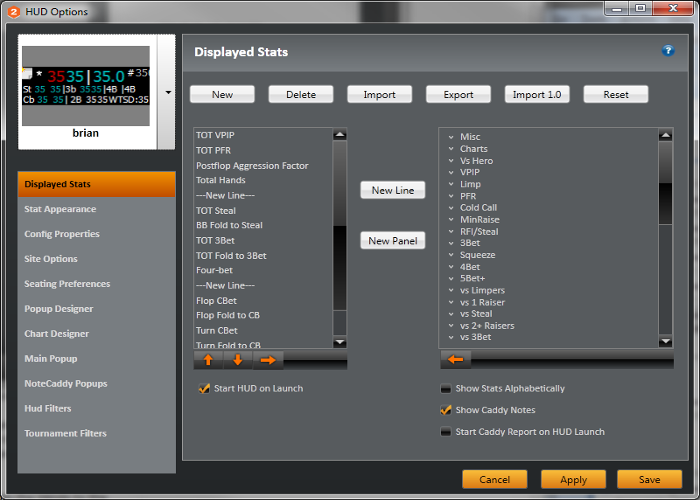 - ХАД. Является, наверное, наиболее важной опцией дополнительного приложения. Появляющееся диалоговое окно можно разместить в любой удобной части экрана монитора. Статистическая информация формируется, ссылаясь на базу данных. Чем больше покерист проводит времени за покерным столом, тем детальнее будут собираться статы на оппонентов. То есть вам будет доступна информация касательно того, как часто на префлопе соперники совершают повышение ставок, как себя ведет в 3bet и тому подобное.