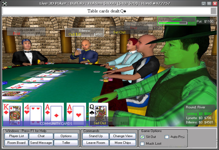 Благодаря этому движку процесс игры носит довольно живой характер, а игровые персонажи имеет реалистичную визуализацию. Всем участникам покера на реальные деньги присущ общий типаж, а также уникальная одежда, эмоции и прически. Для настраивания внешнего облика личного персонажа сам симулятор 3D poker предлагает потенциальным посетителям весьма широкий спектр функциональных возможностей.