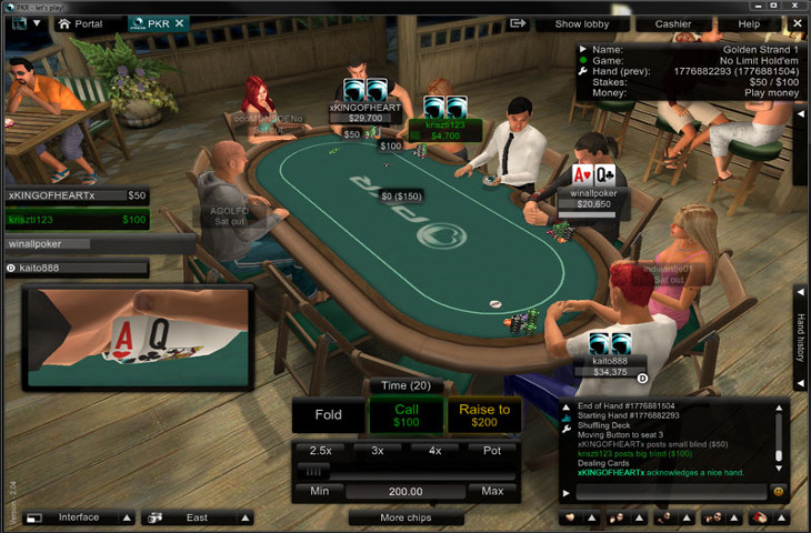 Если говорить о профессиональных эмуляторах 3d poker, то будет настоящим кощунством, если не упомянуть популярный покер-рум PKR Poker. Практически, именно в нем предложили впервые играть в покер на настоящие финансы с использованием 3Д графики.