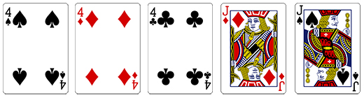 Теперь рассмотрим комбинацию по возрастанию «Каре». Ее формируют 4 совершенно одинаковые игральные карты, но так как в руке должны быть задействованы все пять карт, то допускается, чтобы последняя была любого старшинства. Хотя карманная карта является настоящим подспорьем для образования «Four».