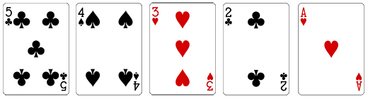 Таким образом, по статистическим подсчетам, основанных на теории вероятности, подобная комбинация карт в покере по возрастанию может прийти всего лишь несколько раз за всю игровую карьеру.