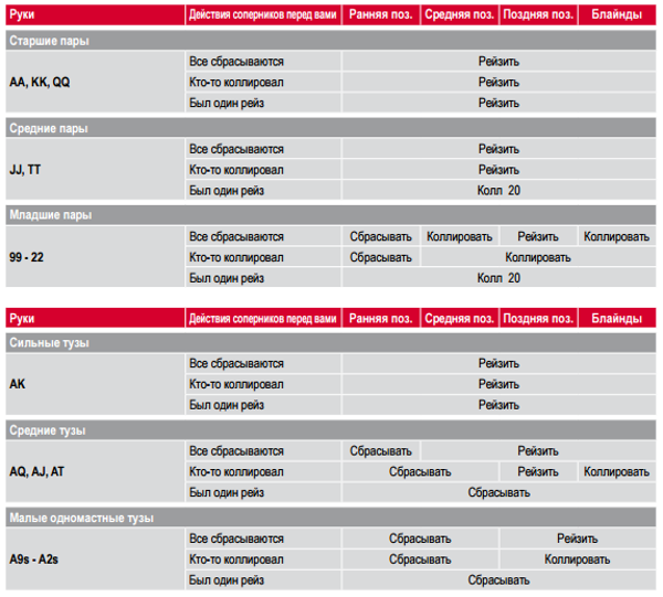 Хотя эта таблица не является панацеей, ведь в результате принятия решений следует брать во внимание особенности игрового процесса оппонентов и остальные сопутствующие параметры.
