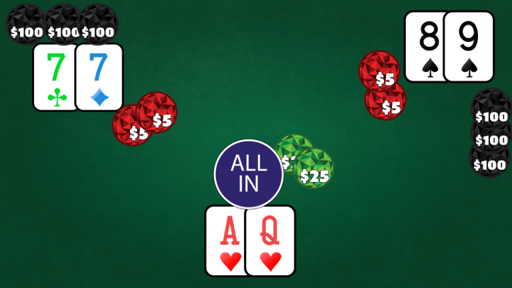 Размер подобного взноса тоже фиксированный, и составляет 50% от величины наименьшего лимита. Однако и тут есть некоторые ограничения. Например, когда открытая старшая карта принадлежит игроку, находящемуся на позиции олл-ин, то с него автоматически снимается шанс ставить бринг-ин. Как следствие этого, его право по часовой стрелке переходит к следующему участнику раздачи. В этом случае его старшинство карты уже не учитывается.