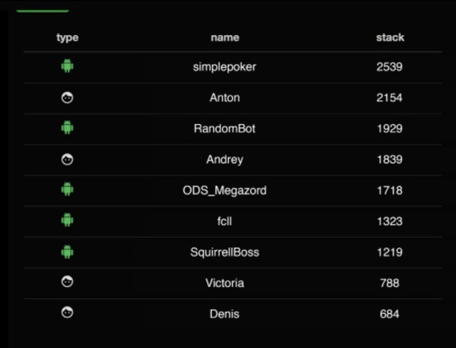 В финальной части соревнования Sberbank Holdem Challenge имел место турнир между реальными участниками и компьютерными ботами, в рамках которого выиграла программа «simplepoker».